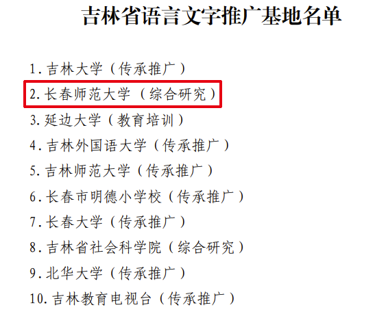 近年来,我校始终高度重视国家通用语言文字推广普及、研究传承工作。学校语言文字工作委员会定期召开专题会议,安排语言文字教育工作和普通话培训、测试、推广工作,并积极组织全校的语言文字规范化宣教活动。特别是在推进语言文字基础能力建设,深化语言文字科学研究,组织语言文字规范化活动,保护开发语言资源,传承弘扬以语言文字为载体的中华优秀文化等方面发挥了重要作用。接下来,我校将以吉林省语言文字推广基地建设为契机,充分发挥基地示范引领作用,紧密结合国家语言文字战略部署和重点工作,大力推广普及国家通用语言文字,传承弘扬中华优秀语言文化,产出有深度、有影响的工作成果,为新时代吉林省语言文字事业发展贡献力量。
