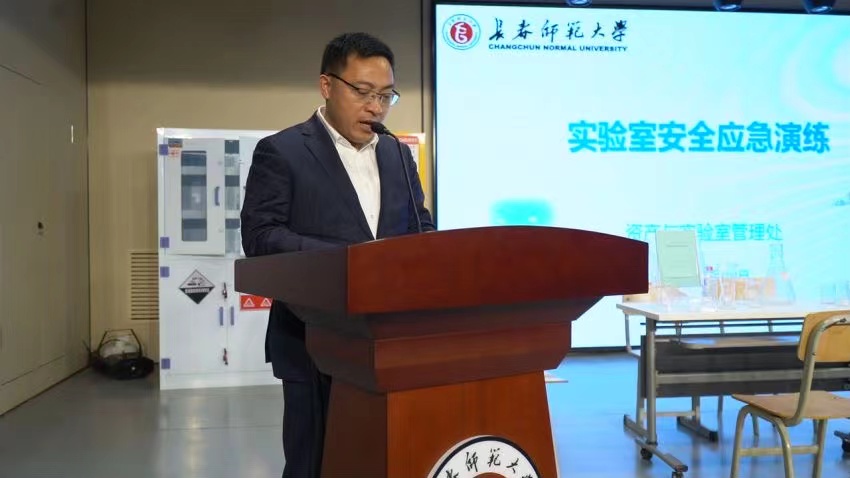 资产与实验室管理处、保卫处、中心实验室等相关部门负责人,生命科学学院、化学学院、物理学院、地理科学学院、工程学院、国际教师教育学院等学院领导及师生代表近200人参加演练。