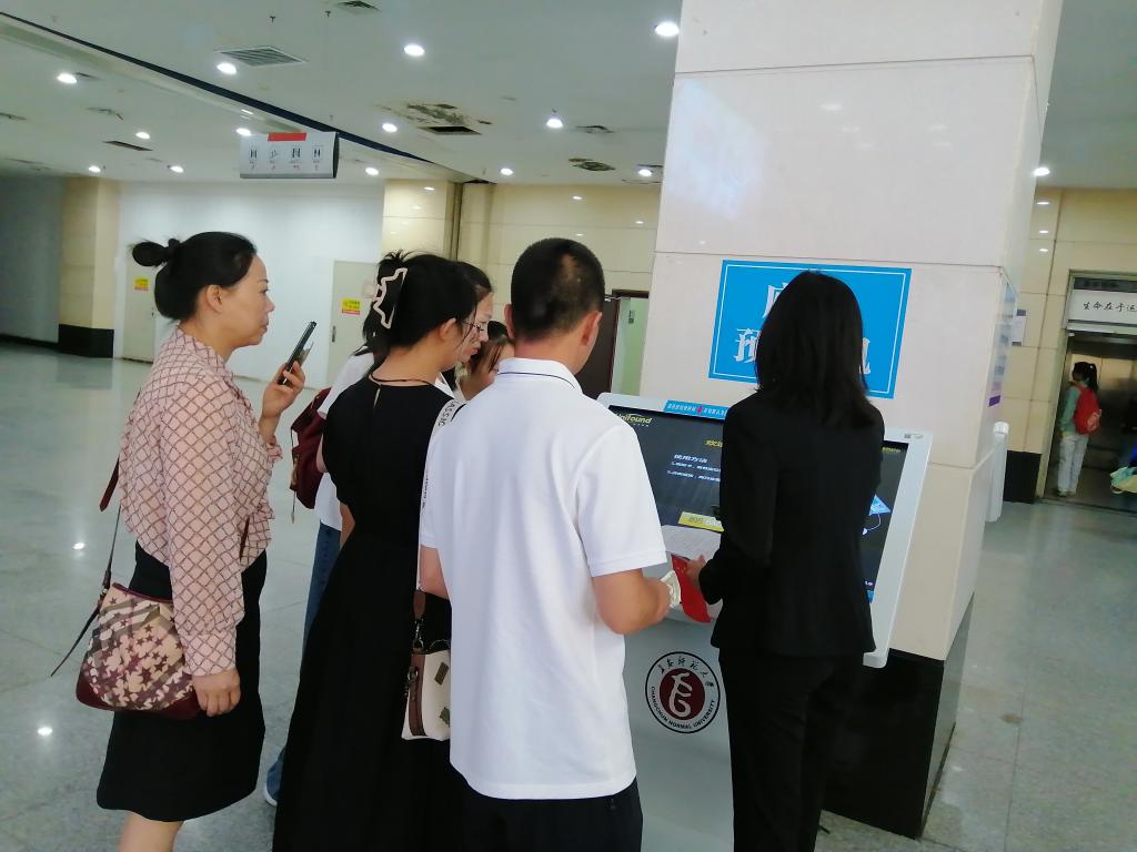 享阅读书会成员带领2023级同学实地体验图书馆资源和设施设备的利用。带领新生及家长参观图书借阅室,介绍馆藏资源分布;引导新生使用检索机,查找定位自己需要的图书;指导新生使用“自助借还机”,现场演示借阅流程,讲解借阅规则;带领新生参观自修室,实地演示预约选座流程;带领新生参观多功能体验区,体验各种数字阅读设备。