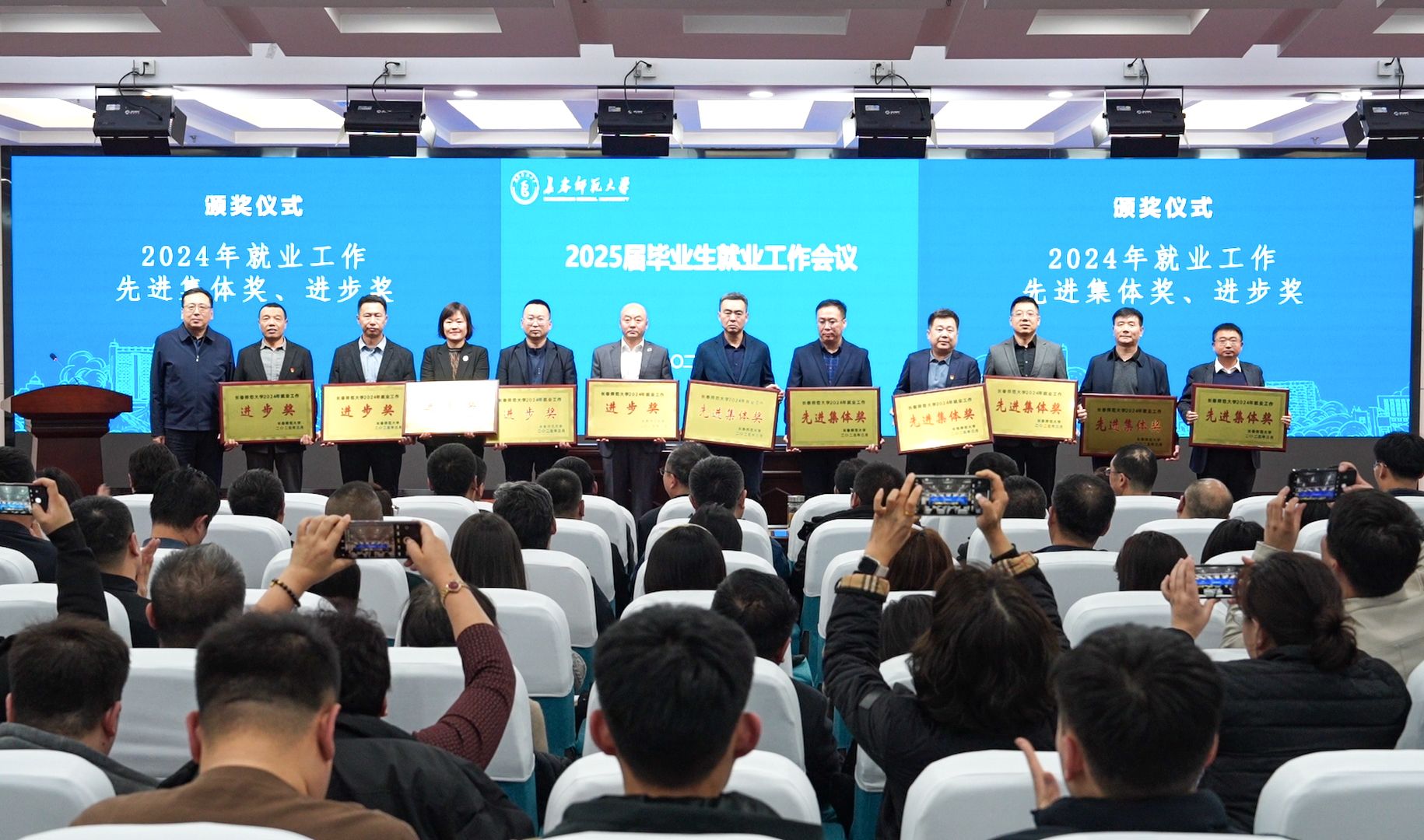 3月26日,学校在新图书馆报告厅召开2025届毕业生就业工作会议。党委书记刘多为2024年就业工作先进集体奖、就业工作进步奖获奖单位颁奖,并讲话。党委副书记、校长王延明为2024年就业工作先进个人代表颁奖。党委副书记张广翠主持会议。
